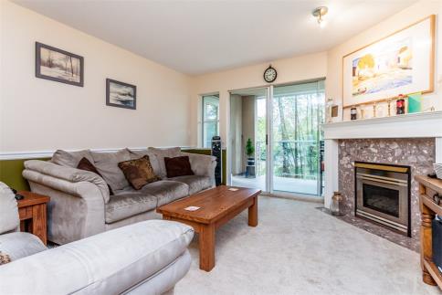 MARK'S PLACE - LOCATION, LOCATION! Clean, cute 1 bdrm condo ready for QUICK POSSESSION! New carpet throughout, new laminate, paint, lighting, all new blinds, washer & dryer & new baseboard heaters. Gas fireplace for extra cozy comfort. H20 tank replaced in '06. Maple kitchen cabinets with tile floor. COVERED BALCONY with duo-access and screen door. Overlooking GREENBELT with south view on quiet side of building. Laundry room. UNDERGROUND PARKING. Buyer to verify measurements if important. Mixed residential /commercial complex. Walk to shops, recreation and transit. Close to WEST COAST EXPRESS. Easy to view. Priced to sell.