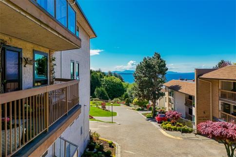 Downsizers rejoice! Experience luxury coastal living with the charm of yesteryear seamlessly blended with modern comforts in this meticulously renovated 2 bed, 2 bath condo. Enjoy the rich beauty of teak flooring underfoot. Entertaining is a breeze with the expansive 8x5 island in the upgraded kitchen that has the convenience of under-cabinet lighting, and embrace efficiency with an under-the island washer dryer. Luxuriate in the timeless elegance with heated floors in the bathrooms and step into the comfort of a 6ft bathtub in the primary ensuite. Enjoy not 1, but 2 decks with over 200sqft of space plus two storage lockers, 1 on the deck and 1 below. Don't miss out on the opportunity to own this exquisite coastal haven that effortlessly marries classic design with contemporary living!