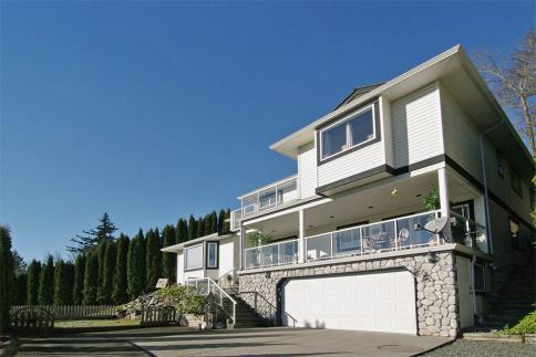 Wow! BARGAIN!!!!! Holy Moly, beautiful 180 degree views of Fraser Valley & Mount Baker. Price reduced from $500,000. Currently priced $33,000 below assessed value. Nice 2 storey home. Formal dining room, French doors. Living room boasts the amazing view and vaulted ceilings. Large deck of the kitchen and another huge deck of the large master bedroom. 5 piece ensuite with jetted soaker tub. Got a big family? no problem 4 bedrooms on the upper floor along with a media/ games room. Lots of skylights, fully landscaped yard & private. Got a home to trade? No problem, trade any home for this one. Call for today details.